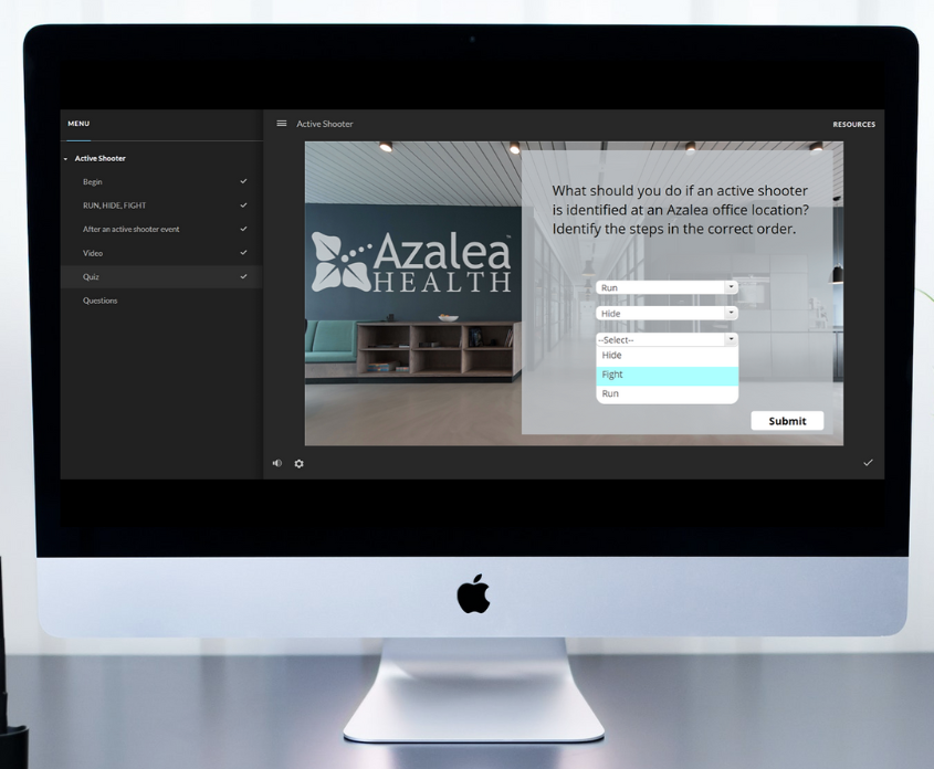 Challenge: Azalea employees needed a modern, engaging training resource that contextualized HIPAA compliance for a telehealth vendor. Traditional healthcare-focused training did not reflect the risks and workflows relevant to Azalea’s role as an EHR provider.