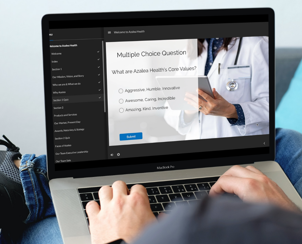Result: The results were highly successful, with the 40-course curriculum consistently receiving a remarkable 5-star rating from participants. New hires gained profound insights into Azalea Health, understanding its mission, vision, values, workflows, and expectations. The commitment to excellence was evident in the meticulous development process, and the curriculum effectively conveyed the collaborative spirit of different departments contributing to the company's overall success. The project's outcome reflected a successful blend of accuracy, engagement, and organizational culture, significantly improving the onboarding experience for internal employees at Azalea Health.